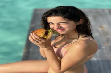 Ananya has posted a string of bikini pictures on Instagram, where she sits by the poolside. In one of the frames, she tucks into a burger.