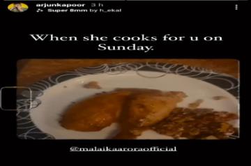 Arjun took to Instagram Stories to share a video of food cooked by Malaika. He also wrote: "When she cooks for you on Sunday."