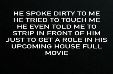 "He spoke dirty to me. He tried to touch me. He even told me to strip in front of him just to get a role in his upcoming Housefull movie," she shared.