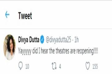 Actress Divya Dutta wrote: "Yayyyyy did I hear the theatres are reopening!!!!"
