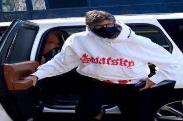 In the images, he is seen wearing a white sweatshirt and black pants.