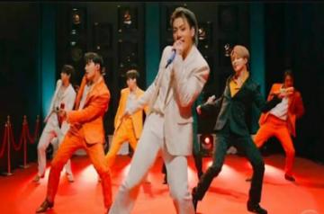 The septet performed "Dynamite" in a pre-recorded video, taking their dynamic gig from the Grammys stage to a rooftop overseeing a breathtaking night view of the South Korean Capital city.