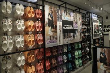 The store welcomes you with the massive Classic wall, the icon of the brand. Original, versatile and comfortable, it’s the iconic Classic clog that started a comfort revolution around the world. Crocs Classic clogs offer lightweight Iconic Crocs Comfort, a colour for every personality, and an ongoing invitation to be comfortable in your own shoes. With 26 holes in a pair of Classic clogs, the footwear can be personalized using Jibbitz shoe charms. Jibbitz charms are a fun, symbolic and sentimental way to represent your unique self to the world. They are little images, letters, sayings, characters, and bits of pop culture mounted on a post to pop into the holes of your Crocs Classics.