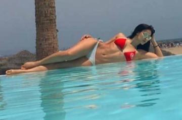 The Instagram post has Elli sprawled besides the pool and flaunting a toned figure in a red-and-white bikini.