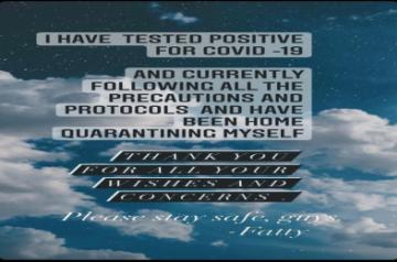 "I have tested positive for Covid-19 and currently following all the precautions and protocols and have been home quarantining myself. Thank you for your wishes and concern. Stay safe, guys," she wrote on Instagram Stories.