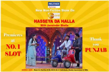 Mumbai, Nov 13 (IANS) The comedy non-fiction series, Hasseya Da Halla With Jaswinder Bhalla, rules the small screen, having premiered at the number one slot in Punjab across all channels.