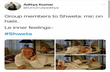 Another netizan used stills of a scene featuring Anupam Kher talking to Archana Puran Singh in Kuch Kuch Hota Hai. The meme read: "Group members to Shweta: "Mic on hai.. Le inner feelings: (Anupam Kher's scene in bed talking on the phone scene) #Shweta".