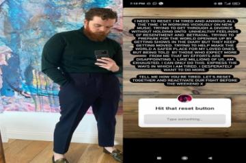 He wrote in the Instagram story: "I need to reset. I'm tired and anxious all the time. I'm trying to work viciously on new music, trying to get through a divorce without holding onto unhealthy feelings of resentment and betrayal."