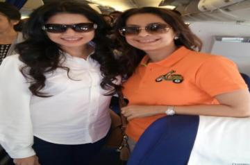 "Kyunki Maine Pyaar Kiya Qayamat Se Qayamat Tak," wrote Juhi as caption with a couple of smileys, along with two images. The first image is from an event while the second picture is clicked inside a plane.