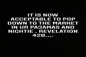 She posted a note on her Instagram story, which reads: "It is now acceptable to pop down to the market in your pajamas and nightie. Revelation 420."