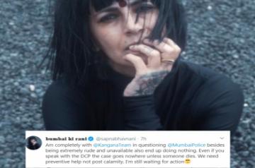 "Am completely with @KanganaTeam in questioning @MumbaiPolice besides being extremely rude and unavailable also end up doing nothing. Even if you speak with the DCP the case goes nowhere unless someone dies. We need preventive help not post calamity. I'm still waiting for action," Sapna tweeted on Tuesday.