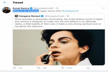 Mumbai, Sep 16 (IANS) Actress Kangana Ranaut and Kunal Kamra locked horns on Twitter on Wednesday after the comedian took a dig at her and compared her with Indian yogi Sadhguru.