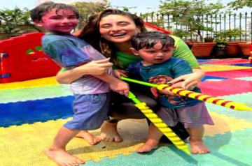 Mumbai, March 7 (IANS) Bollywood actress Kareena Kapoor Khan is celebrating Holi with her two kids -- Taimur Ali Khan and Jehangir Ali Khan -- but missed Saif Ali Khan as the 'Omkara' actor was away from the celebrations.