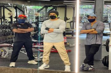 The actor, who is currently shooting for "Bhool Bhulaiyaa 2", uploaded a picture on Instagram, where he is seen in the gym with his trainers.