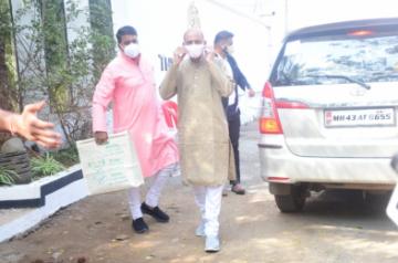A veteran priest and his assistant were pictured getting down from a car with huge bags, probably carrying the items required to perform the wedding rituals. Even though the veteran priest folded his hands in a 'namaste' to the paparazzi clicking his photographs outside the gate, he did not answer their questions regarding the wedding details and time.