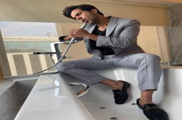 In a new Instagram picture, the actor, dressed in a suit, sits on a bathtub, holding a handshower like a mic.