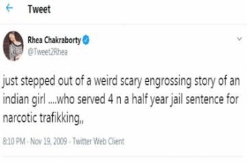 Rhea's posted the tweet, about an Indian girl jailed for narcotics trafficking, in November 2019.