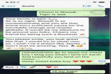 Sushant also praises Rhea, her brother Showik and family in the chat.