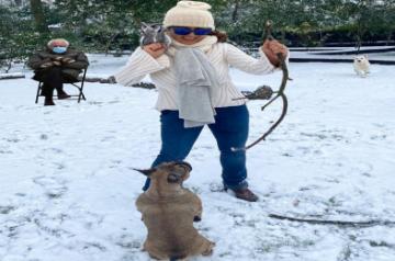 London, Jan 26 (IANS) Hollywood star Salma Hayek has joined the viral meme fest on US Senator Bernie Sanders posting Instagram pictures where she is seen playing in the snow with her owl and her dogs.