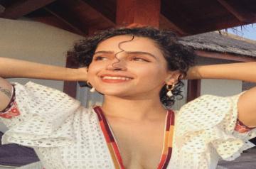 In the Instagram image, Sanya is dressed in an ivory crochet dress with a plunging neckline. The actress is seen flaunting her curly hair and she looks a way from the camera.