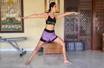 Sara posted a video on Instagram. In the clip, she is seen doing yoga dressed in lavender shorts paired with black sports bra.