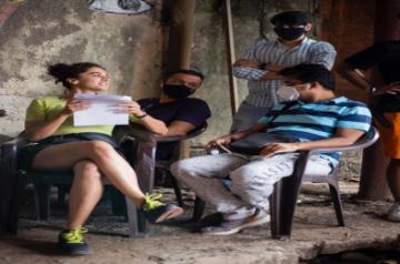 Taapsee posted a picture on Instagram, where she is seen holding the script while talking to the director and crew members of the movie.