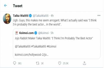 New Delhi, Nov 13 (IANS) Hollywood filmmaker and actor Taika Waititi has reacted with trademark good humour to an IANS story.