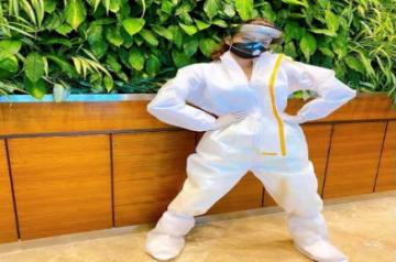 She took to Instagram, where she posted a picture of herself dressed in a PPE suit. She is also wearing a face mask and shield.