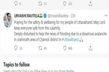 "I am deeply saddened to hear the news of flooding and destruction caused by a devastating avalanche in the Joshimath area of Chamoli district in Uttarakhand. I pray for the safety and well-being of my Uttarakhand people and convey my condolences to the families who lost their loved ones. May the Lord protect them from this tragedy," Urvashi said.