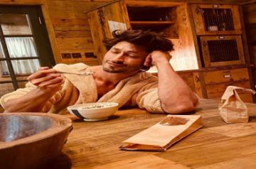 Vidyut took to Instagram and shared a photo where he is seen sitting at the dining table dressed in a robe. In the picture, he scoops up food from a bowl in a spoon and stares at it.