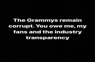 "The Grammys remain corrupt. You owe me, my fans and the industry transparency...," he wrote on social media.