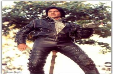 In the film still, Big B is seen wearing a black leather jacket and leather pants, much in sync with Michael Jackson's signature style which was all about jacket, matching studded pants, a sequined shirt and matching gloves.