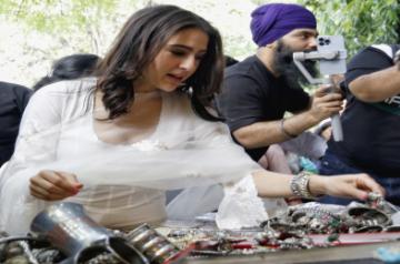 In one picture, Vicky and Sara are seen together smiling at the camera. Vicky is seen holding an earring while Sara leans to try it. The actor looks dapper in casual wear paired with sunglasses while Sara kept it cool with Indian wear.