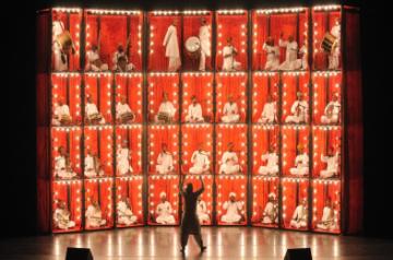 Directed by Indian director Roysten Abel, ‘The Manganiyar Seduction’ uses theatre to create magic in music. The musicians are seated on the stage in a four-storeyed bank of lighted pods  – a combination of Jaipur's Hawa Mahal and the Amsterdam red light district.  The set, which looks like a magic box, has 36 red-curtained cubicles arranged in four horizontal rows one on top of the other.