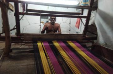 The craft cluster is located in Koyyalagudem, started in 1990 and registered as a handloom brand with the Government of India. The cluster functions by collecting orders from fashion houses and organizations and giving these to the 50-60 artisans, who have workshops within their homes. Whole families, with both early learning and experienced members aged between 20-65 years, are part of the weaving process, making the impact of lockdown closures even more pronounced.