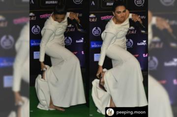 Mumbai, Sep 19 (IANS) Ditching high heels, Bollywood actress Swara Bhasker walked the green carpet for an event here bare foot.