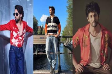 Go retro like Ayushmann and pair a bright red shirt with high-waisted jeans and a graphic pattern.