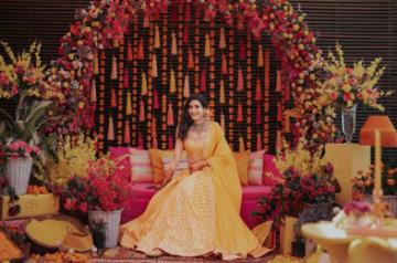 February 6, 2022 (IANSlife) Karishma Tanna and her beau Varun Bangera were dressed to the nines in Designer Punit Balana for the Mehendi ceremony before the wedding. Karishma looked stunning in a yellow bandhni lehenga with a pink tinge, while her would-be husband looked dapper in a block printed redchuridar kurta.