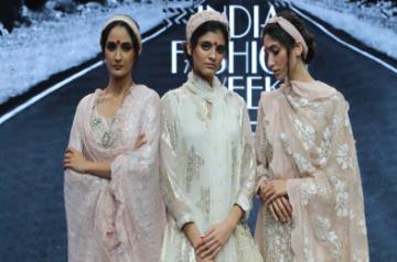 The line-up comprised of mostly Indian silhouettes of kurta sets, ghararas, gowns and sarees. Dhaka has kept the colour palette between whites, ivories and nude and has used intricate hand embroidery that adds finesse to each of the pieces, apart from frills, feathers and sequins work.