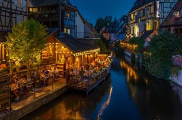The restaurant has a wonderfully warm atmosphere, excellent service, and reasonable prices, set in a lush green courtyard with a European vibe.