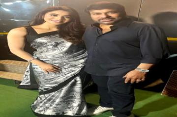 Hyderabad, Dec 28 (IANS) Telugu Megastar Chiranjeevi, who is gearing up for his film, 'Waltair Veerayya', happily flirted with Urvashi Rautela during a media event organised for the film in Hyderabad.