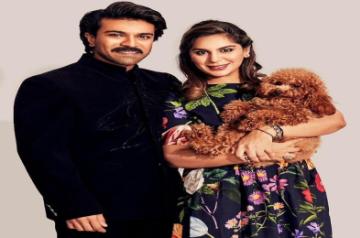 Ram Charan is seen in an elegant all-black suit that complemented Upasana's dainty floral dress. With Rhyme in their arms, the picture is truly a treat for their fans and followers.