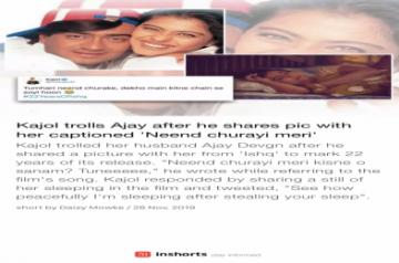 Kajol's reply was hilarious. She posted a still from the film that shows her asleep. "Tumhari neend churake, dekho main kitne chain se soyi hoon," she wrote.