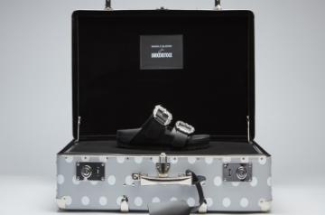 The collection reinvents the Birkenstock style with its proudly glamorous detailing, featuring Manolo Blahnik’s trademark emphasis on all eye-catching details. The nonpareil flair for which Manolo Blahnik is renowned meets the premium craftsmanship of Birkenstock, creating a capsule at once radically modern and dynamic for both brands. Embellished with crystals and packaged in exclusive polka dot shoebox and dust bag following traditional Manolo Blahnik design, this richly coloured collection accommodates the best elements of both brands–for a remarkable, regal meeting of creative minds.