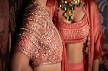 Mehra: This collection is majorly a power play of placement embroideries. We've taken inspiration from florals and have played around with size and colours. The idea was to explore different motifs and use them with traditional embroideries.