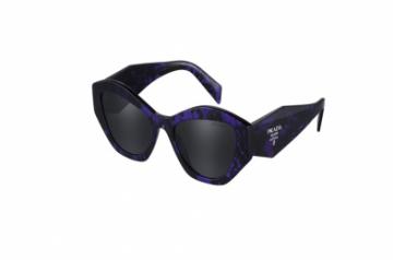 - SPR07Y: The new sunglasses from the Prada Symbole collection are revisited with a bold and geometric design that nods to a feminine cat-eye shape. The multifaceted front profiles are the standout element, along with the three-dimensional temple construction personalized by an iconographic interpretation of Prada’s traditional triangle logo. The colour palette includes shades of Black, Honey Tortoise, Talc, Abstract Purple and Abstract Orange, paired with lenses in classic and colourful hues.